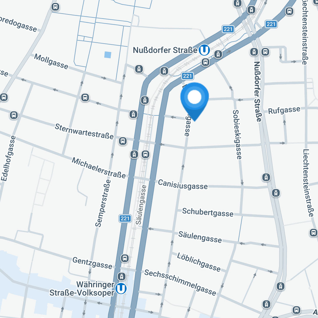 Die Anbindung an die öffentlichen Verkehrsmittel ist ausgezeichnet. Die U-Bahn-Station Nussdorfer Straße (U6) erreichen Sie in wenigen Gehminuten. Zusätzlich verkehren entlang des Währinger Gürtels mehrere Straßenbahn- und Buslinien, die eine schnelle Verbindung in alle Teile Wiens ermöglichen.